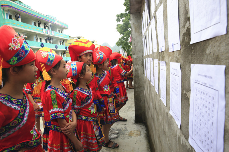 图为天等县东平镇中心小学学生讲解廉洁知识。