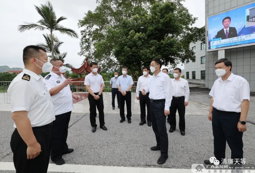 刘宁在龙州县水口口岸,实地检查指导常态化疫情防控和边境口岸货物通关工作情况。记者 黄克 摄