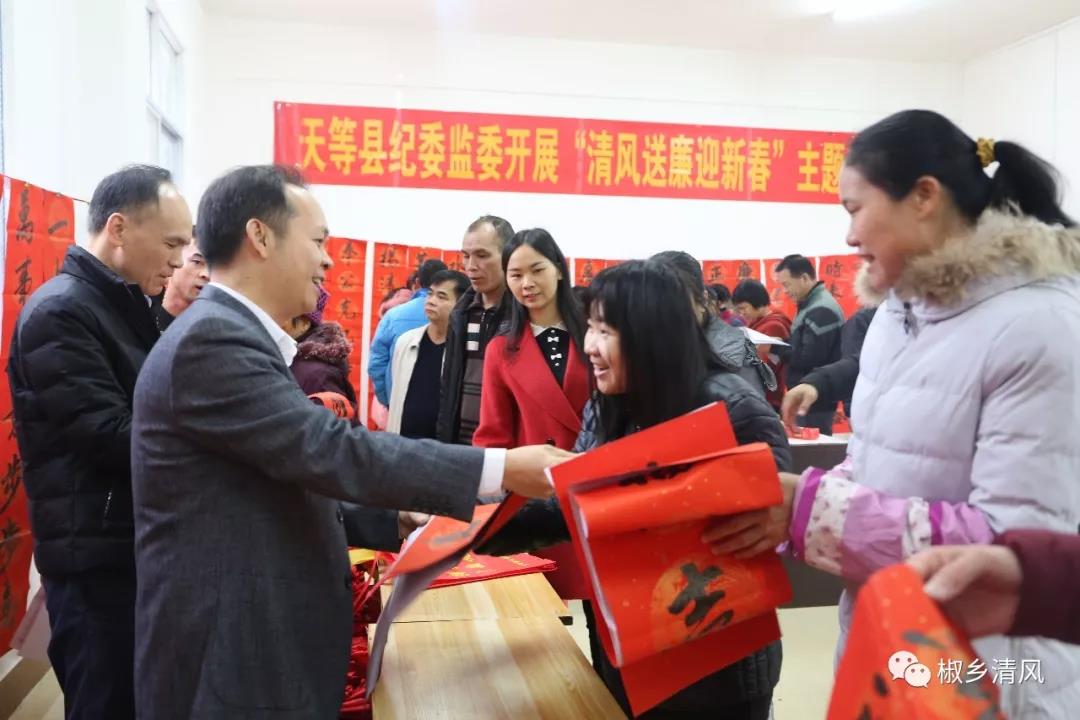 春节前夕,县纪委监委组织纪检监察干部和书法爱好者,走进县易地扶贫搬迁安置点龙岩小区开展“清风送廉迎新春”活动,现场为广大搬迁群众送‘春廉’年货,积极营造风清气正的良好社会氛围,过一个廉洁、健康、祥和的春节。