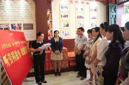 图为4月29日,该县纪检干部到企业倾听“劳动模范”刘兆强讲述诚信创业故事。