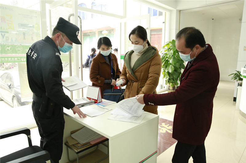 图为县疫情防控督查组在东平镇农村商业银行查看体温检测器和进出人员体温登记表。