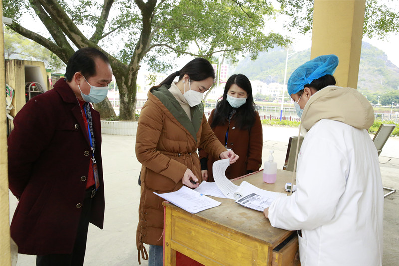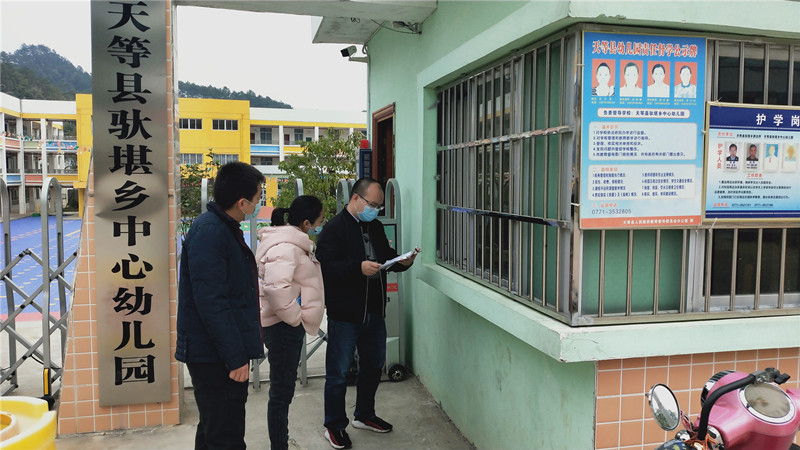 图为驮堪乡纪委到该乡幼儿园督查疫情防控工作。
