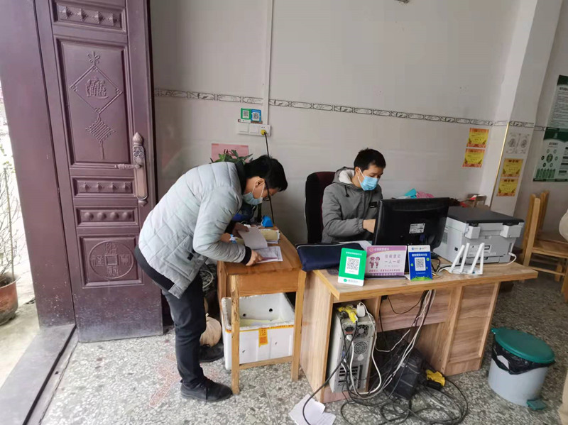 图为县疫情防控督查组在向都镇卫生院查看进出人员体温登记表。
