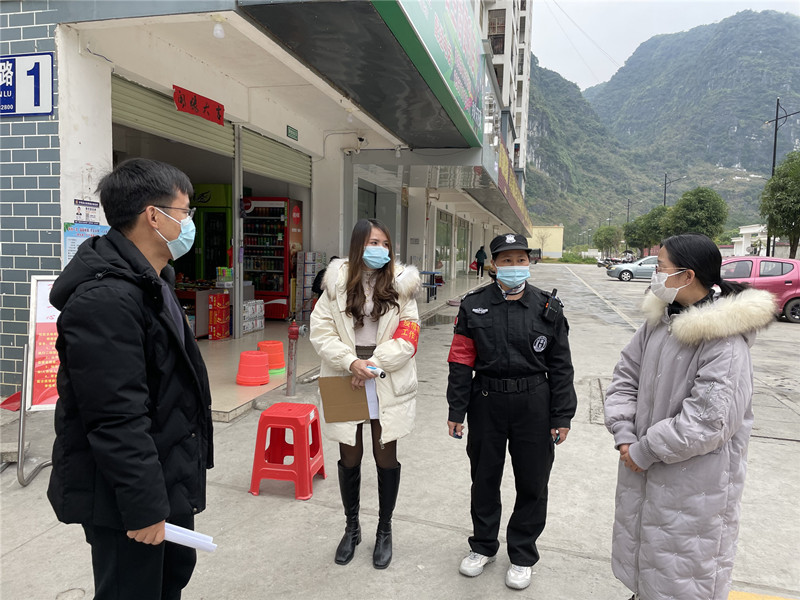 图为天等镇纪委到龙岩社区出入口督查二码联查执行情况。