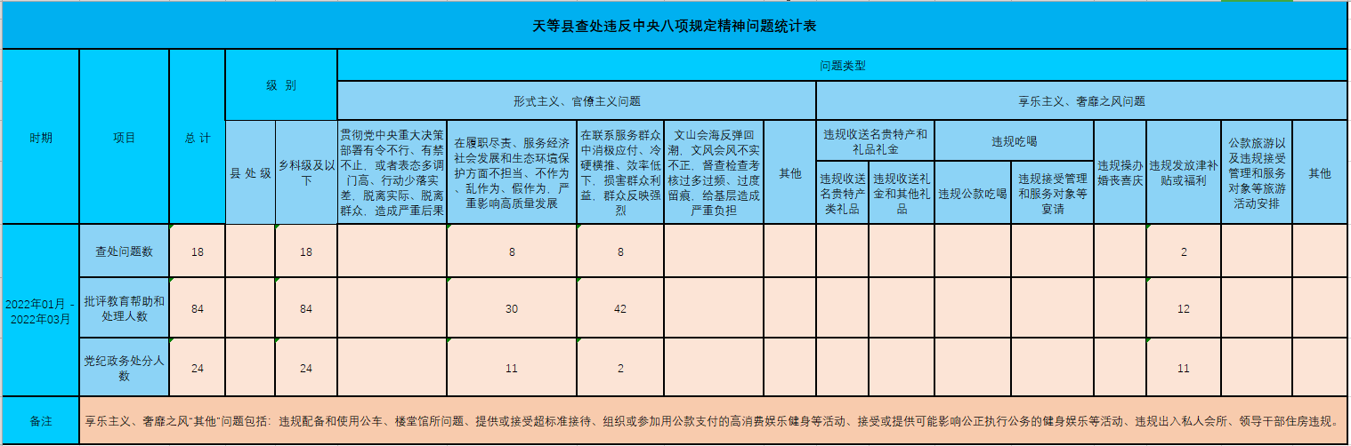 2022年1-3月天等县查处违反中央八项规定精神问题18起