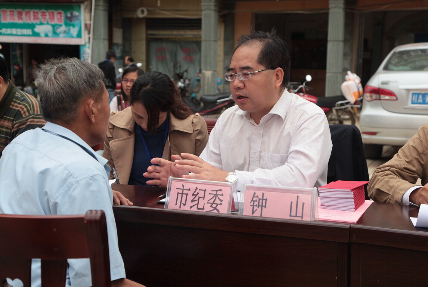 崇左市委常委、市纪委书记钟山在接访现场为群众答疑解难