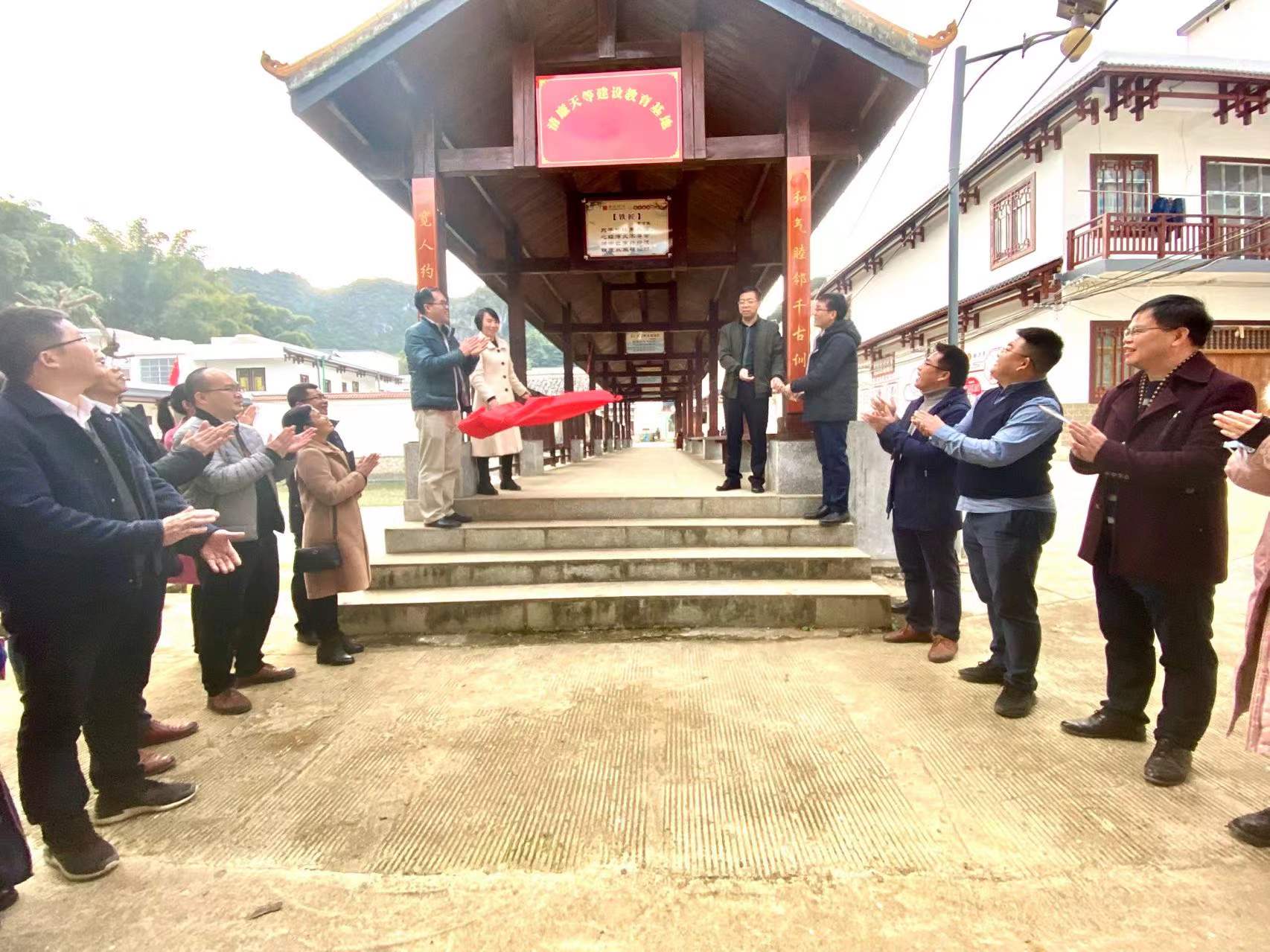 参观结束后,县纪委监委领导干部与驮堪乡领导干部共同为清廉天等建设教育基地进行揭牌。
