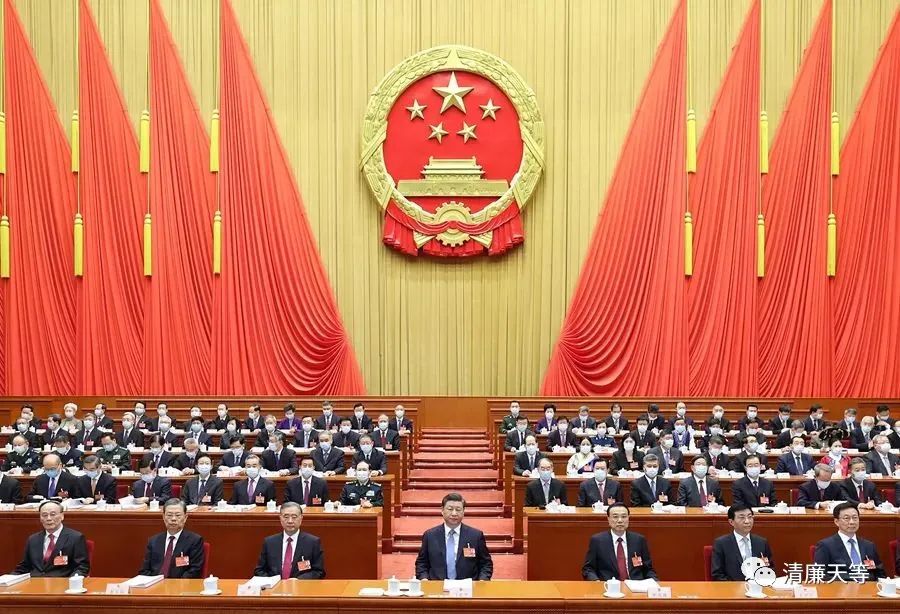 习近平、李克强、汪洋、王沪宁、赵乐际、韩正、王岐山和大会主席团成员在主席台就座。