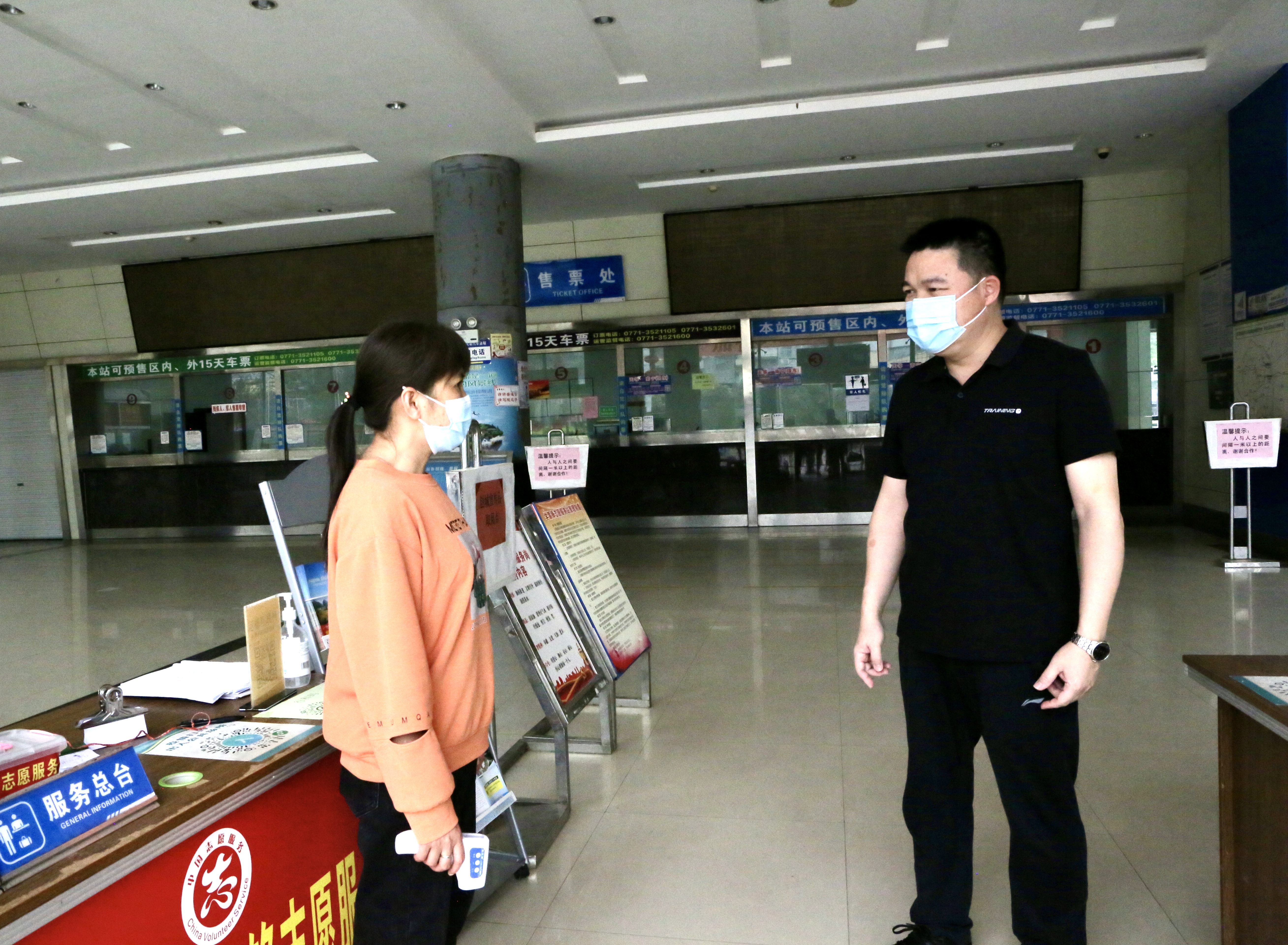 图为县委常委、纪委书记、监委主任黄玉书(右)在县汽车站督查疫情防控工作。