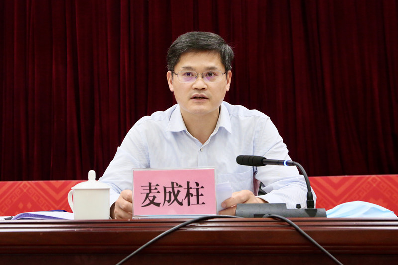 图为县委书记麦成柱作警示教育讲话。