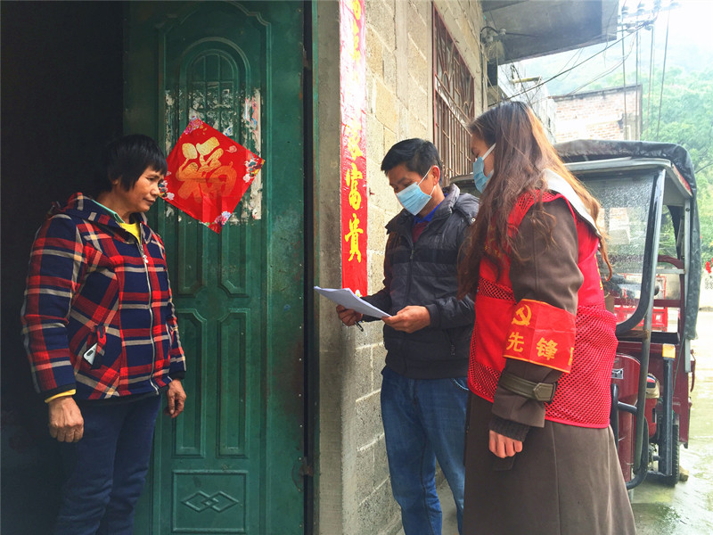 图为黄就清和黄千妤入户宣传防疫政策并核查返乡人员信息情况。