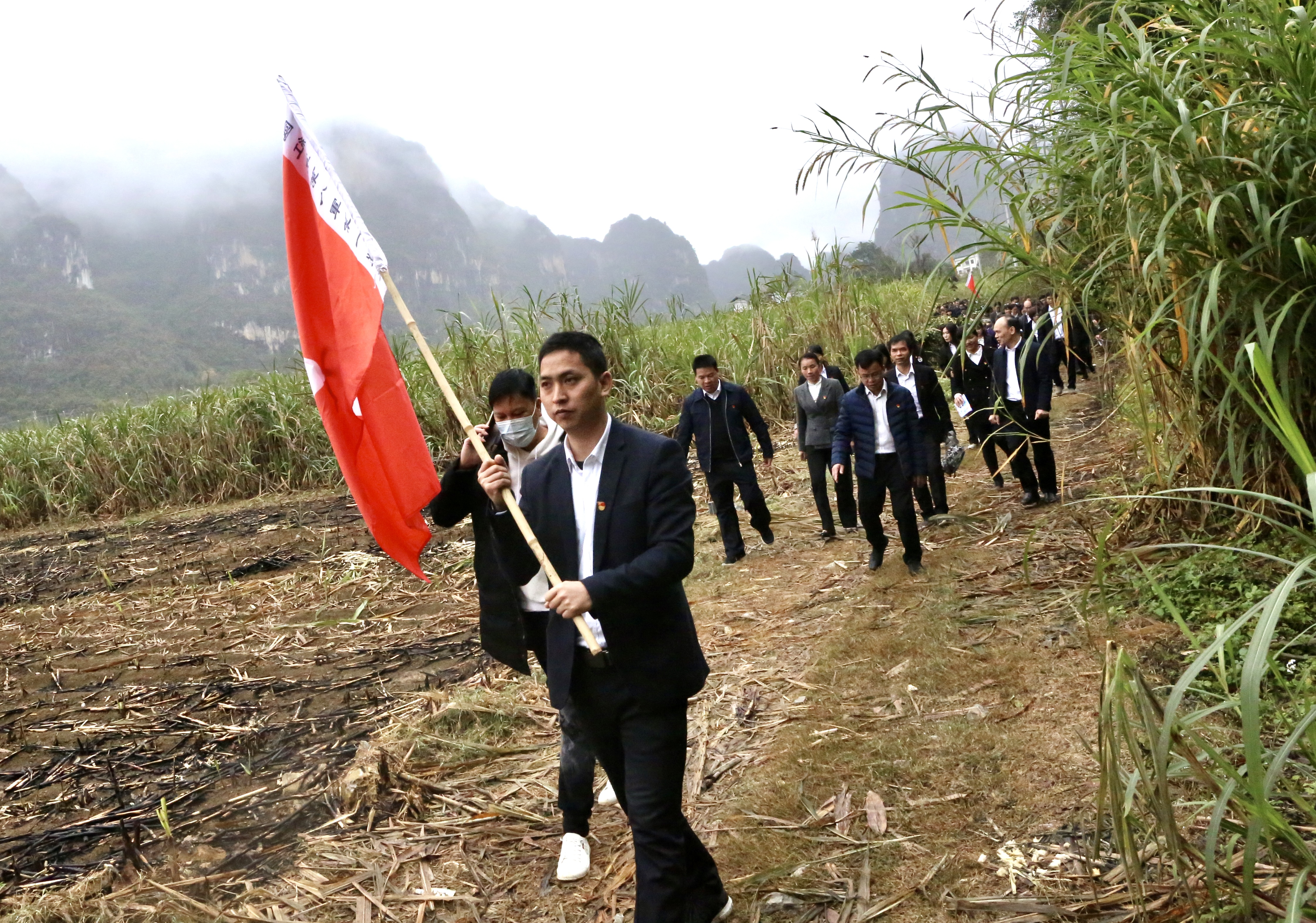 活动的第二站,党员同志们来到了龙州县上龙乡水陇屯开展“重走红军路”体验教育活动。大家沿着当年红八军走过的足迹,重温革命历史,感受红八军的艰难困苦和坚强意志,更加坚定走好新时代长征路的信心与决心。