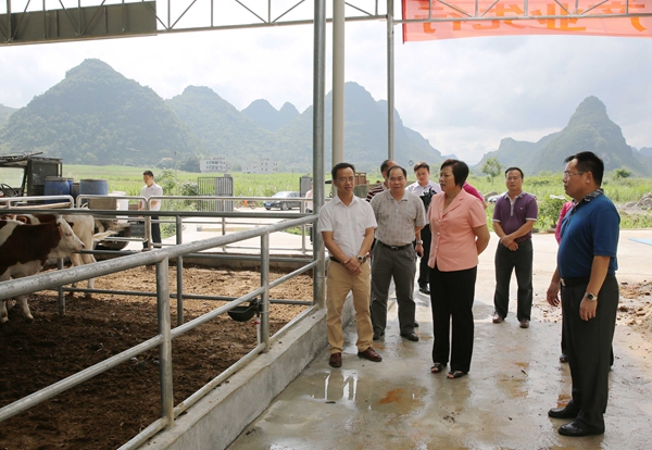 在驮堪乡养牛扶贫示范区调研扶贫产业建设。