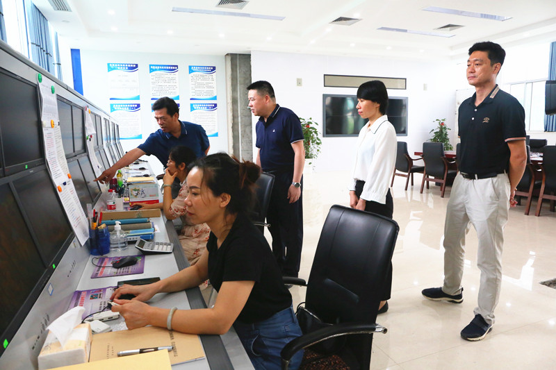 图为县委常委、纪委书记、监委主任黄玉书(右三)深入县气象局进行防汛安全督查。