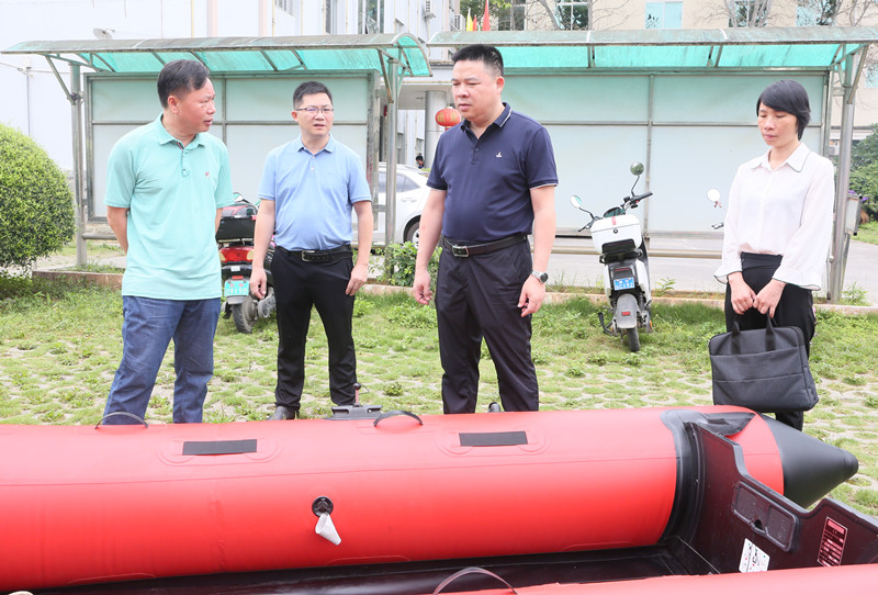 图为县委常委、纪委书记、监委主任黄玉书(右二)深入县应急管理局督查防汛物资保障工作。